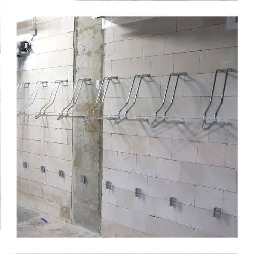 Velosipēdu statīvs WALL 3 riepas platumam līdz 55mm. Paredzēts trīs velosipēdu novietošanai pie sienas. Maksimālā pieļaujamā slodze vienam velosipēdam: 30kg. Stiprināms ar skrūvēm (komplektā). Komplektā arī stiprinājums aizmugurējai riepai (novērš sienu nosmērēšanos un stabilizē velosipēdu). Materiāls: cinkots tērauds. Savietojams ar velosipēdiem, kam ir dubļusargi, disku bremzes, kā arī elektriskajiem velosipēdiem. Izmēri: statīva platums 140mm, statīva garums 500mm, caurules šķērsgriezums d=18mm, caurules biezums 2mm. Statīvs paredzēts riepas platumam līdz 29×2.2 collām (5.5cm platums). Pieejams arī variants līdz 29×3.15 collām (8cm platums), saderība ar bremžu diskiem līdz d=203mm. Svars: 7.5kg.