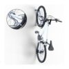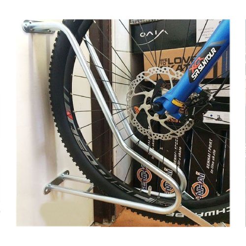 Velosipēdu statīvs WALL 4 riepas platumam līdz 80mm. Paredzēts četru velosipēdu novietošanai pie sienas. Maksimālā pieļaujamā slodze vienam velosipēdam: 30kg. Stiprināms ar skrūvēm (komplektā). Komplektā arī stiprinājums aizmugurējai riepai (novērš sienu nosmērēšanos un stabilizē velosipēdu). Materiāls: cinkots tērauds. Savietojams ar velosipēdiem, kam ir dubļusargi, disku bremzes, kā arī elektriskajiem velosipēdiem. Izmēri: statīva platums 140mm, statīva garums 500mm, caurules šķērsgriezums d=18mm, caurules biezums 2mm. Statīvs paredzēts riepas platumam līdz 29×3.15 collām (8cm platums), saderība ar bremžu diskiem līdz d=203mm. Pieejams arī variants līdz 29×2.2 collām (5.5cm platums). Svars: 10kg.