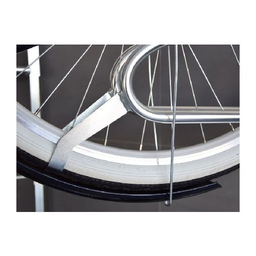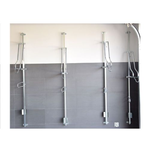 Velosipēdu statīvs WALL PREM 5 riepas platumam līdz 55mm. Paredzēts piecu velosipēdu novietošanai pie sienas. Pilnībā regulējams (uz augšu-leju/ pa kreisi-pa labi) – ļauj pielāgot pozīciju. Statīvu var pārvietot horizontāli, atvieglojot velosipēda noņemšanu un noevietošanu, ja attālumi starp velosipēdiem ir mazi. Maksimālā pieļaujamā slodze: 30kg. Stiprināms ar skrūvēm (komplektā). Komplektā arī stiprinājums aizmugurējai riepai (novērš sienu nosmērēšanos un stabilizē velosipēdu). Materiāls: cinkots tērauds. Savietojams ar velosipēdiem, kam ir dubļusargi, disku bremzes, kā arī elektriskajiem velosipēdiem. Izmēri: statīva dziļums 500mm, statīva vadotnes garums 1800mm (profils 25x25x1.5mm), caurules šķērsgriezums d=18mm, caurules biezums 2mm. Statīvs paredzēts riepas platumam līdz 29×2.2 collām (5.5cm platums). Pieejams arī variants līdz 29×3.15 collām (8cm platums), saderība ar bremžu diskiem līdz d=203mm. Konkrētais modelis bez speciāla roktura (par papildus samaksu pieejams ar speciālo rokturi, kas paredzēts velosipēda pieslēgšanai pie rāmja). Par papildus samaksu iespējams arī nerūsējošā tērauda variants. Svars: 25kg.