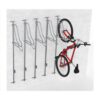 Velosipēdu statīvs WALL PREM 5 riepas platumam līdz 80mm. Paredzēts piecu velosipēdu novietošanai pie sienas. Pilnībā regulējams (uz augšu-leju/ pa kreisi-pa labi) – ļauj pielāgot pozīciju. Statīvu var pārvietot horizontāli, atvieglojot velosipēda noņemšanu un noevietošanu, ja attālumi starp velosipēdiem ir mazi. Maksimālā pieļaujamā slodze: 30kg. Stiprināms ar skrūvēm (komplektā). Komplektā arī stiprinājums aizmugurējai riepai (novērš sienu nosmērēšanos un stabilizē velosipēdu). Materiāls: cinkots tērauds. Savietojams ar velosipēdiem, kam ir dubļusargi, disku bremzes, kā arī elektriskajiem velosipēdiem. Izmēri: statīva dziļums 500mm, statīva vadotnes garums 1800mm (profils 25x25x1.5mm), caurules šķērsgriezums d=18mm, caurules biezums 2mm. Statīvs paredzēts riepas platumam līdz 29×3.15 collām (8cm platums), saderība ar bremžu diskiem līdz d=203mm. Pieejams arī variants līdz 29×2.2 collām (5.5cm platums). Konkrētais modelis bez speciāla roktura (par papildus samaksu pieejams ar speciālo rokturi, kas paredzēts velosipēda pieslēgšanai pie rāmja). Par papildus samaksu iespējams arī nerūsējošā tērauda variants. Svars: 25kg.
