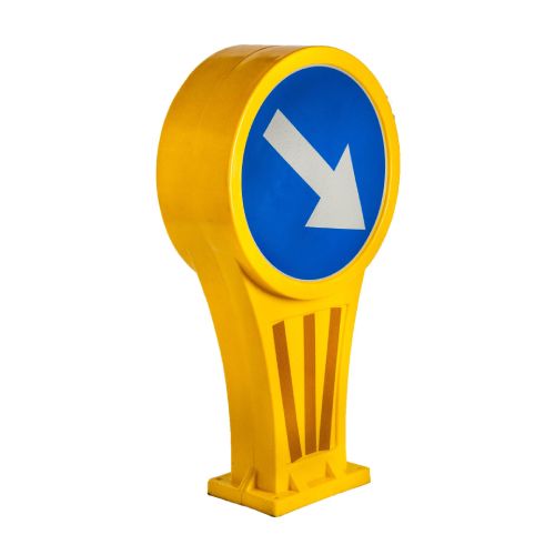 Virzienu norādošs brīdinājuma panelis ar bultu – virziens pa labi. Zīmes diametrs: 600mm. Svars: 8kg.